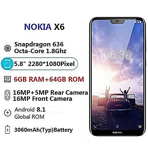 Nokia X6 (6.1 Plus) (6GB RAM, 64GB ROM) Android 8.1 Oreo, (16MP+5MP) + 16MP,Dual SIM 4G LTE Smartphone